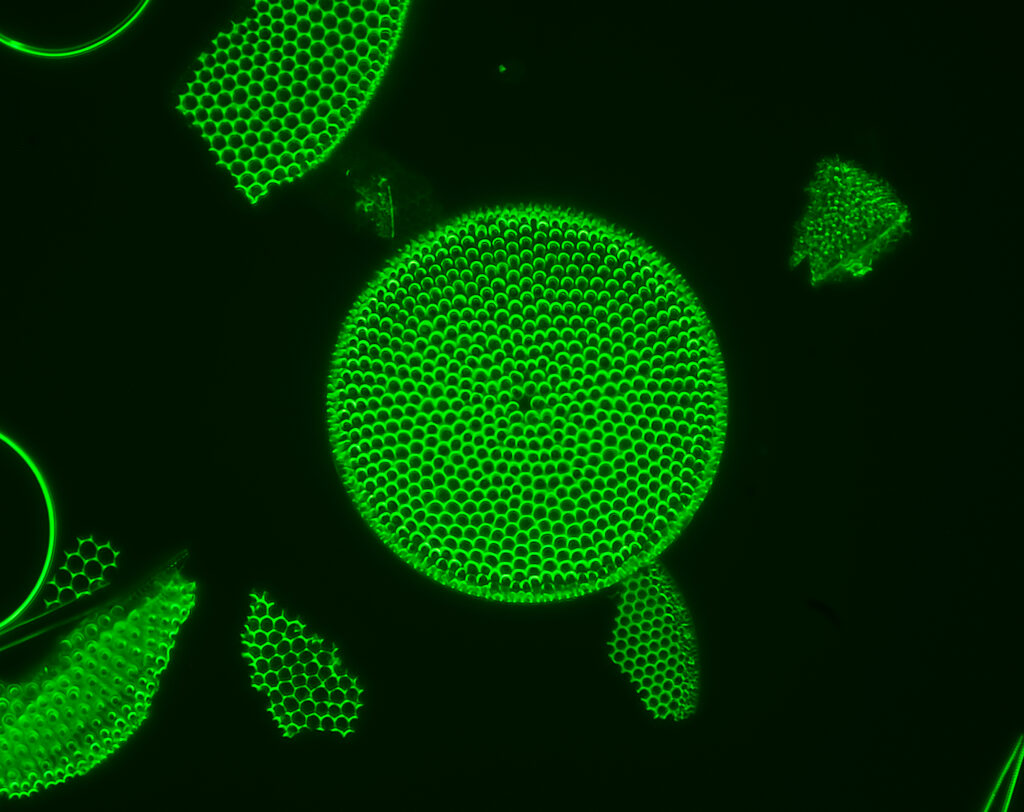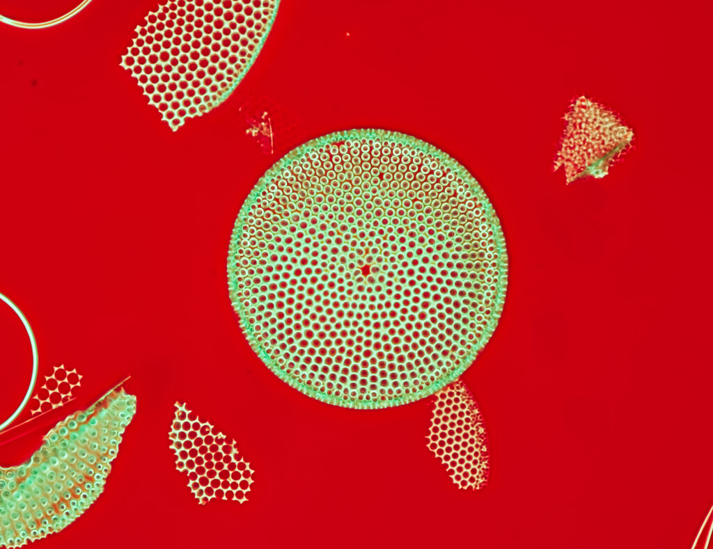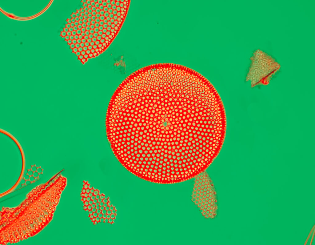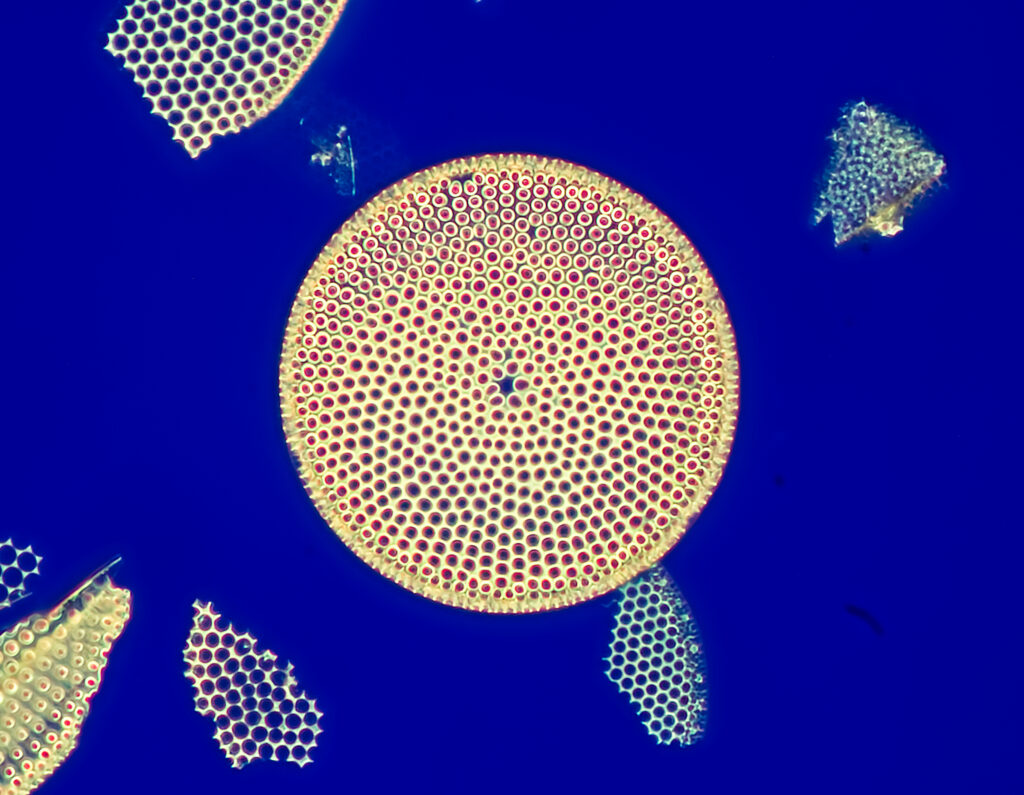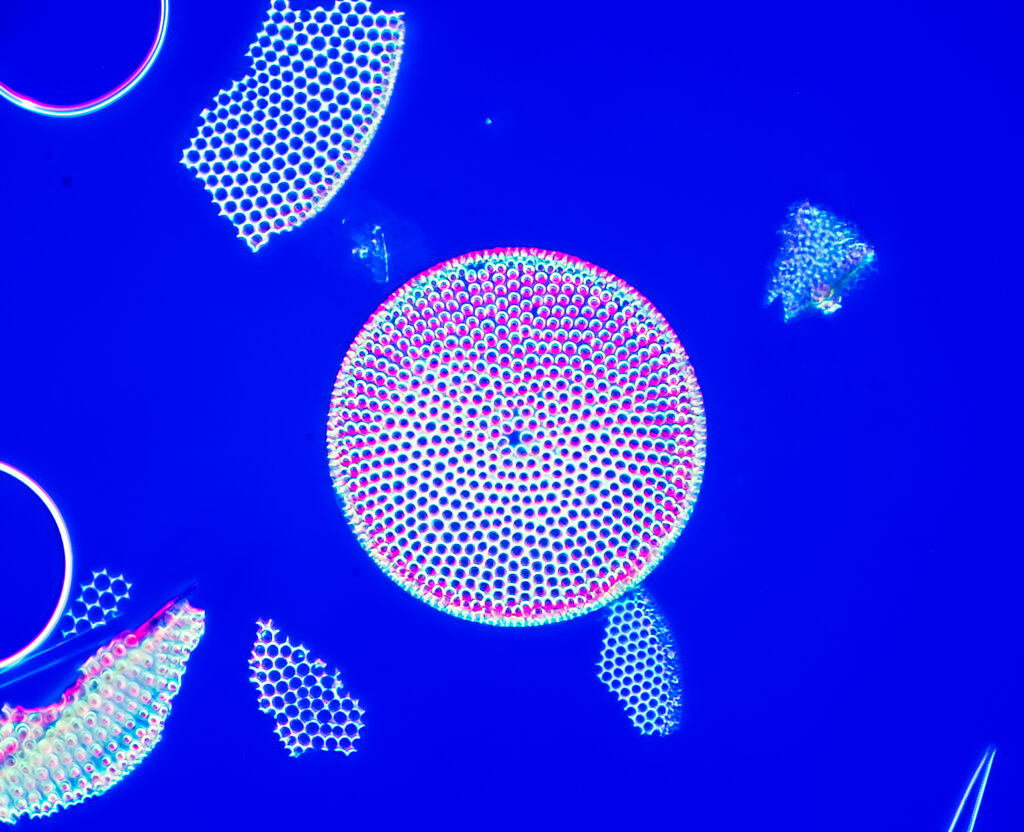 Fossil diatoms from a lake in Japan. These results were obtained with the Bresser 40X dry achromat objective – not the best lens! The illuminator works with NAs up to 1.0. I have yet to try higher values. Each image is a stack of 5 or more images. I have kept the post-processing of the RAW files to a minimum.